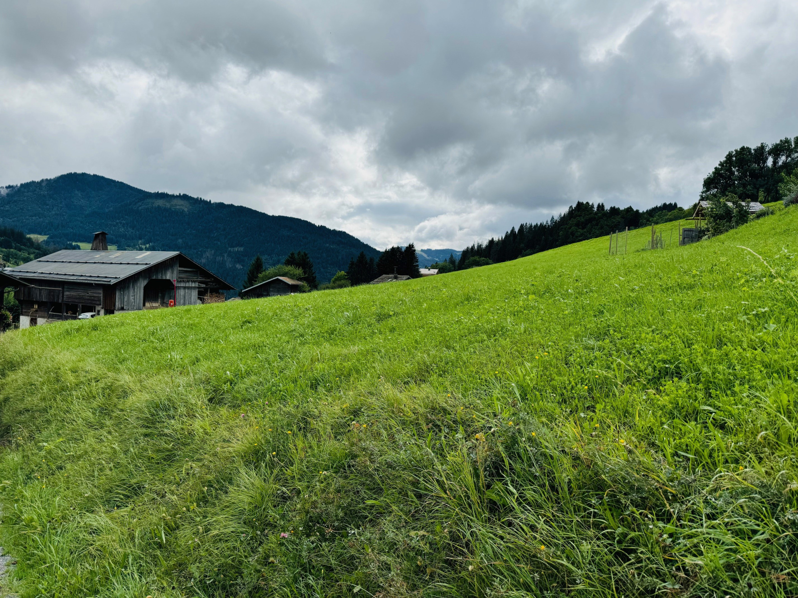 GRAND-BORNAND secteur "Les Frasses", à 2 km des pistes de ski du Chinaillon, beau terrain de 987 m2 exposé plein sud avec une très belle vue sur la chaîne des aravis...